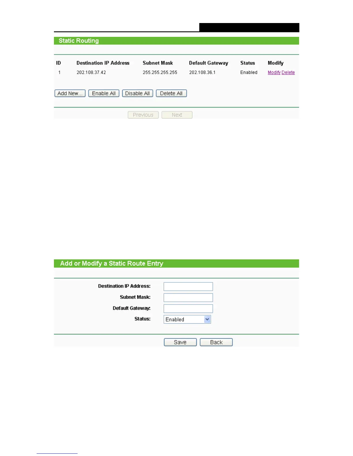 Figura 3-48 Adaugare sau Modificare inregistrare Rutare Statica
