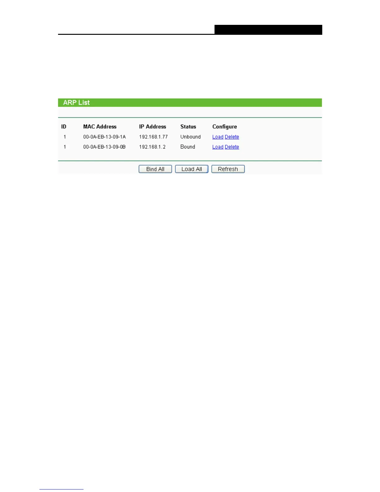 2. Apasati butonul Load All pentru a incarca toate elementele in lista IP & MAC Binding.