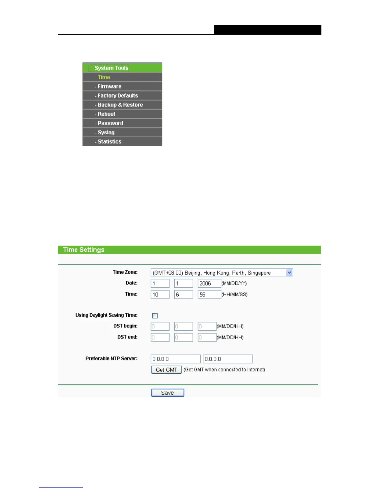 Pentru router puteti seta manual Data si Ora, sau puteti obtine GMT de pe Internet pe aceasta
