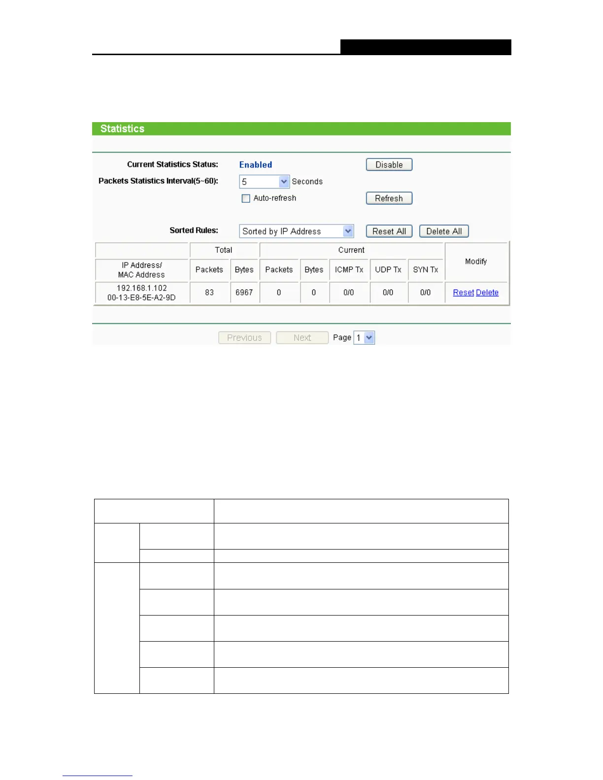 Pagina Statistici (ilustrata in Figura 3-65) afiseaza traficul fiecarui PC din retea, inclusiv traficul