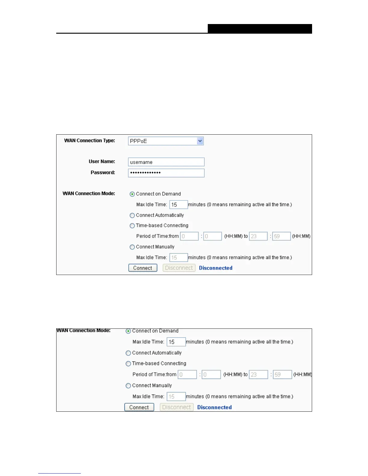 selectati “Connect on Demand” sau “Connect Manually”. Introduceti un interval adecvat