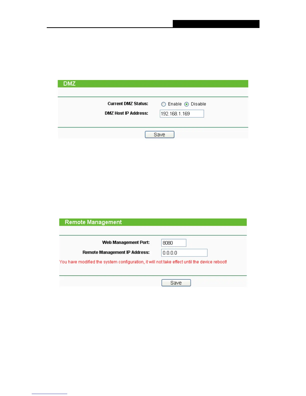 campul "Web Management Port". Selectati “Save” si reinitializati router-ul.
