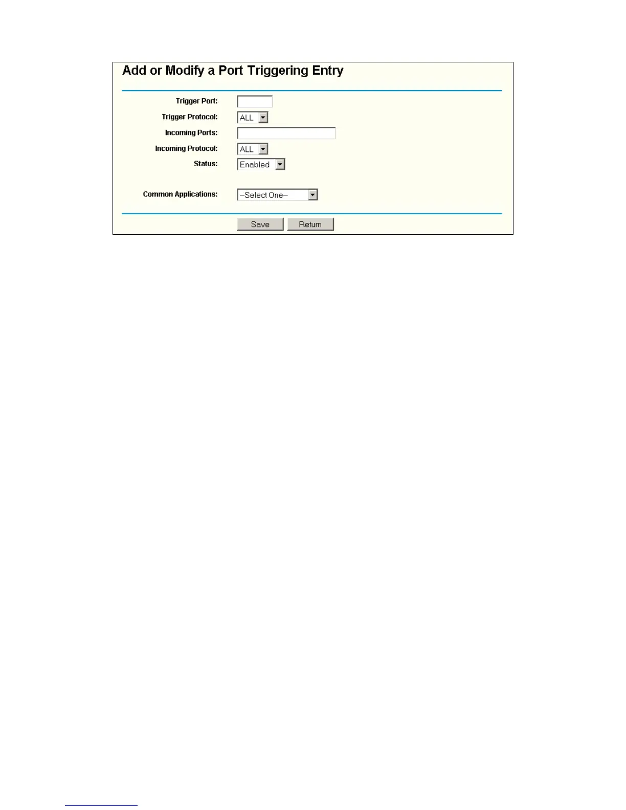 application will fill in the Trigger Port, incoming Ports Range boxes and select the Enable
