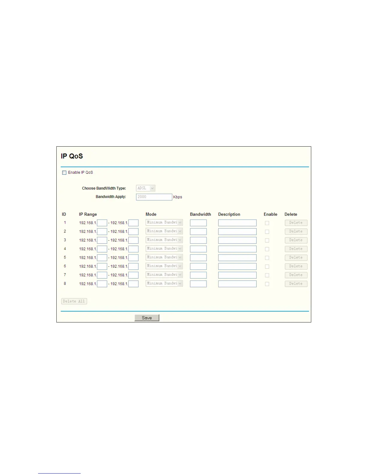 IP range) to make full use of the supplied bandwidth. You can configure the IP QoS on this page,
