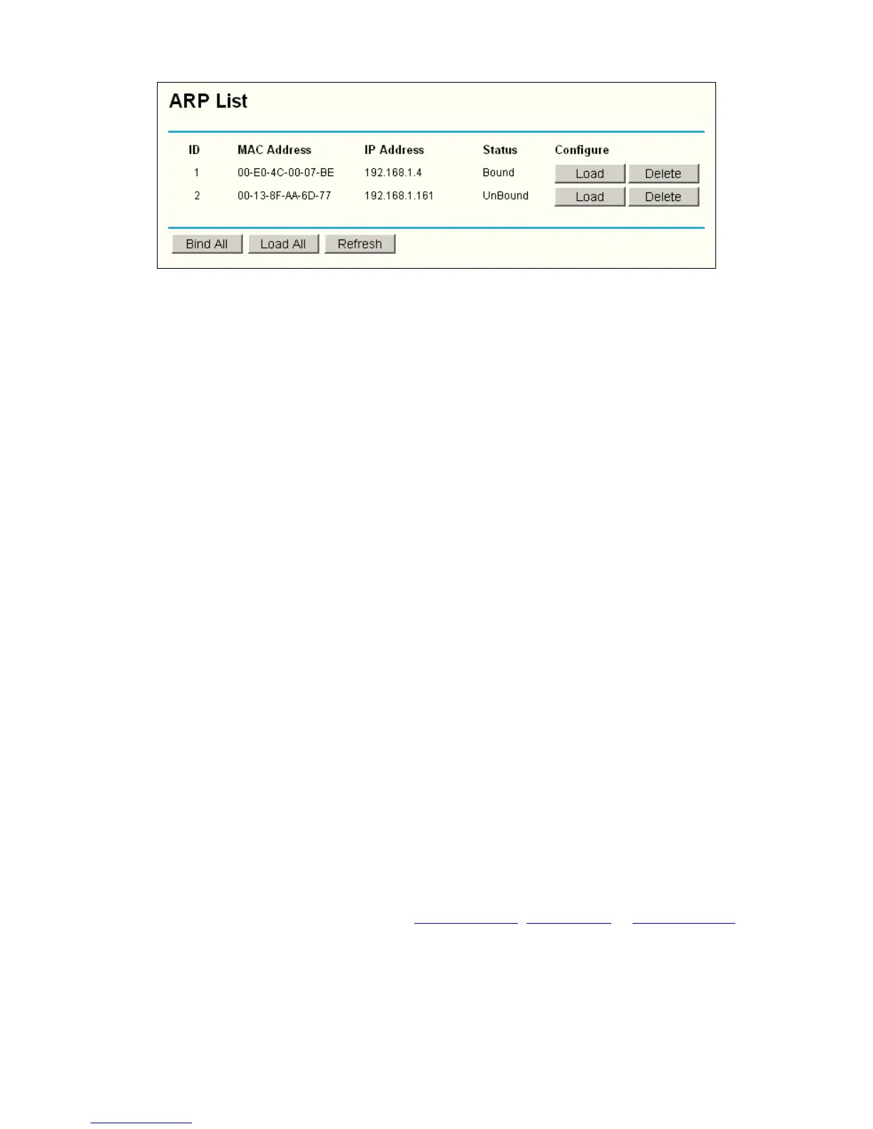 Click the Load All button to load all items to the IP & MAC Binding list.