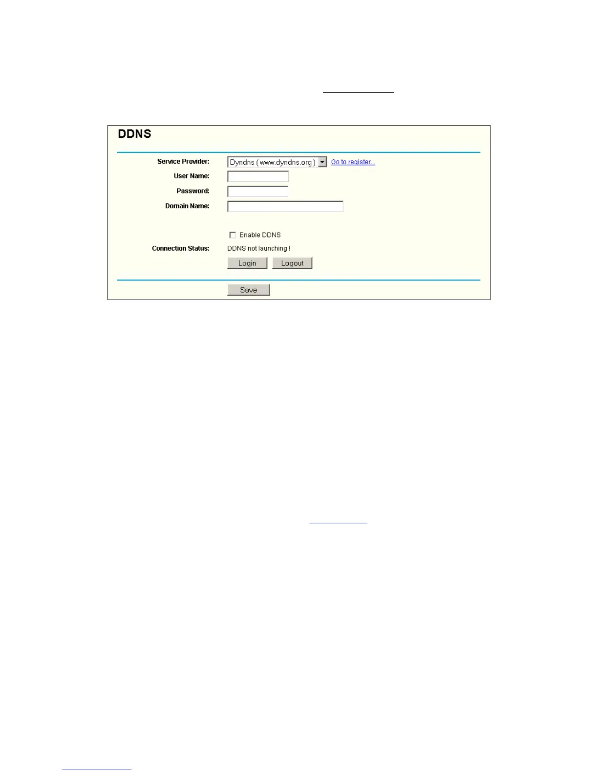 If your selected dynamic DNS Service Provider is www.dyndns.org, the page will appear as