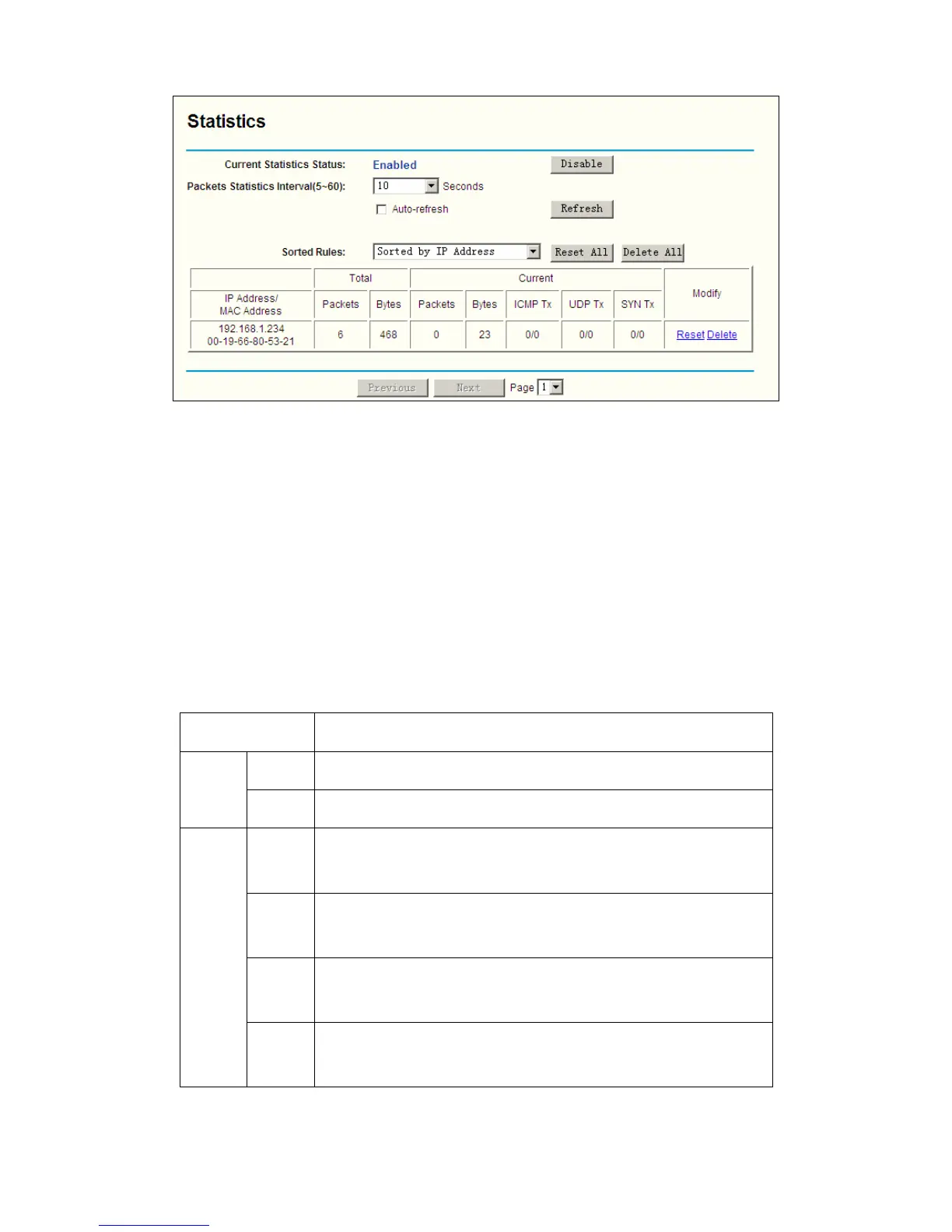 ¾ Current Statistics Status - Enable or Disable. The default value is disabled. To enable, click
