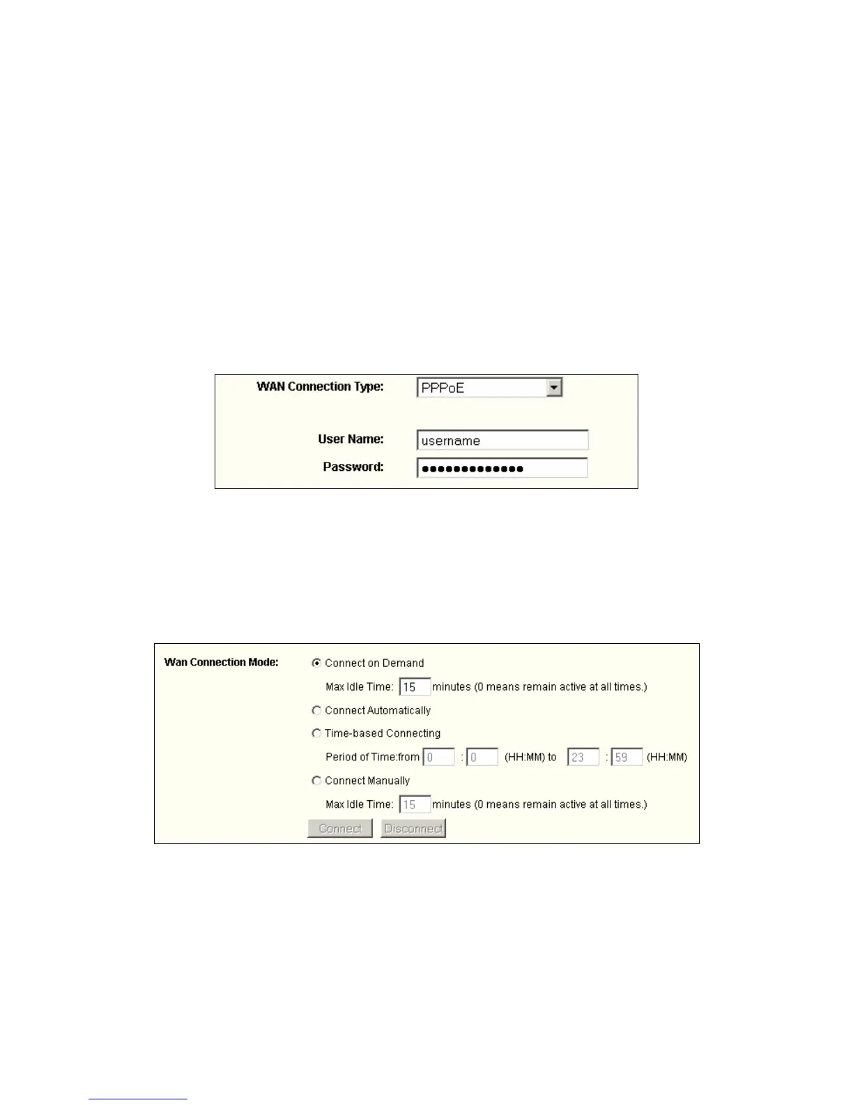 submenu. On the WAN page, select “PPPoE” for WAN Connection Type. Type user