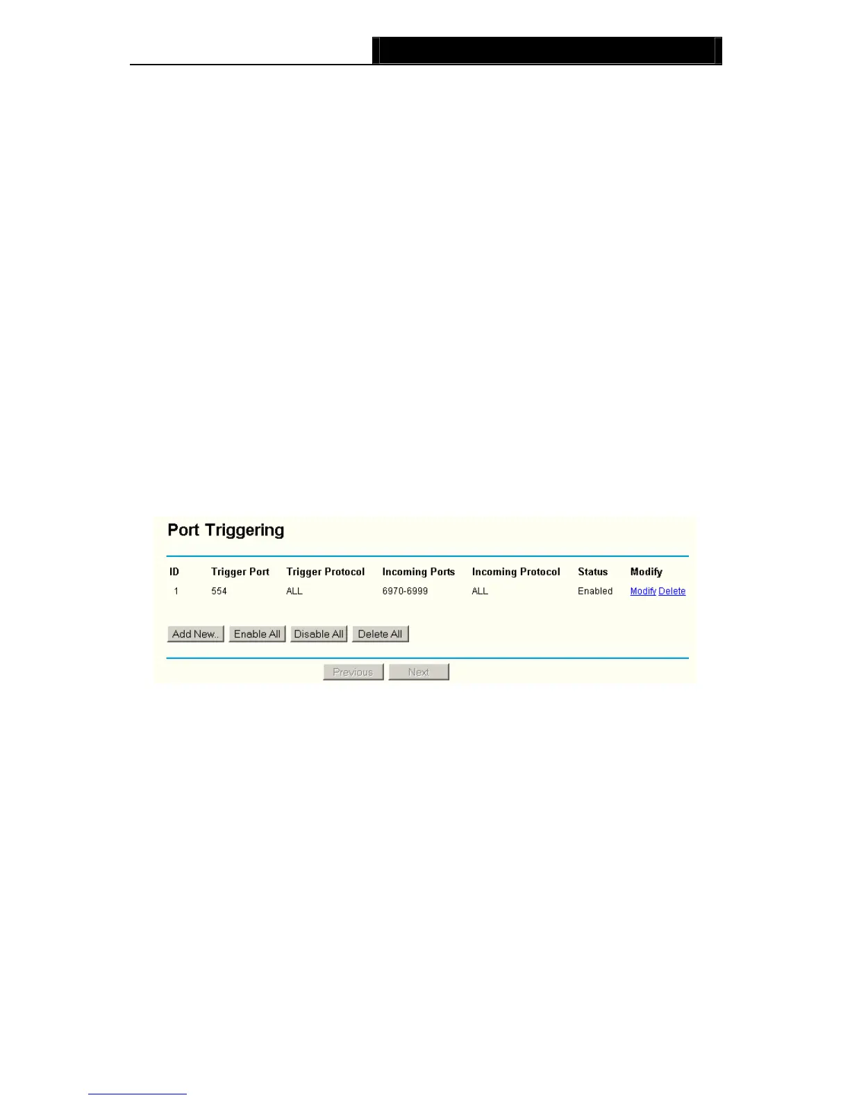 ¾ Trigger Protocol - The protocol used for Trigger Ports, either TCP, UDP, or All (all
