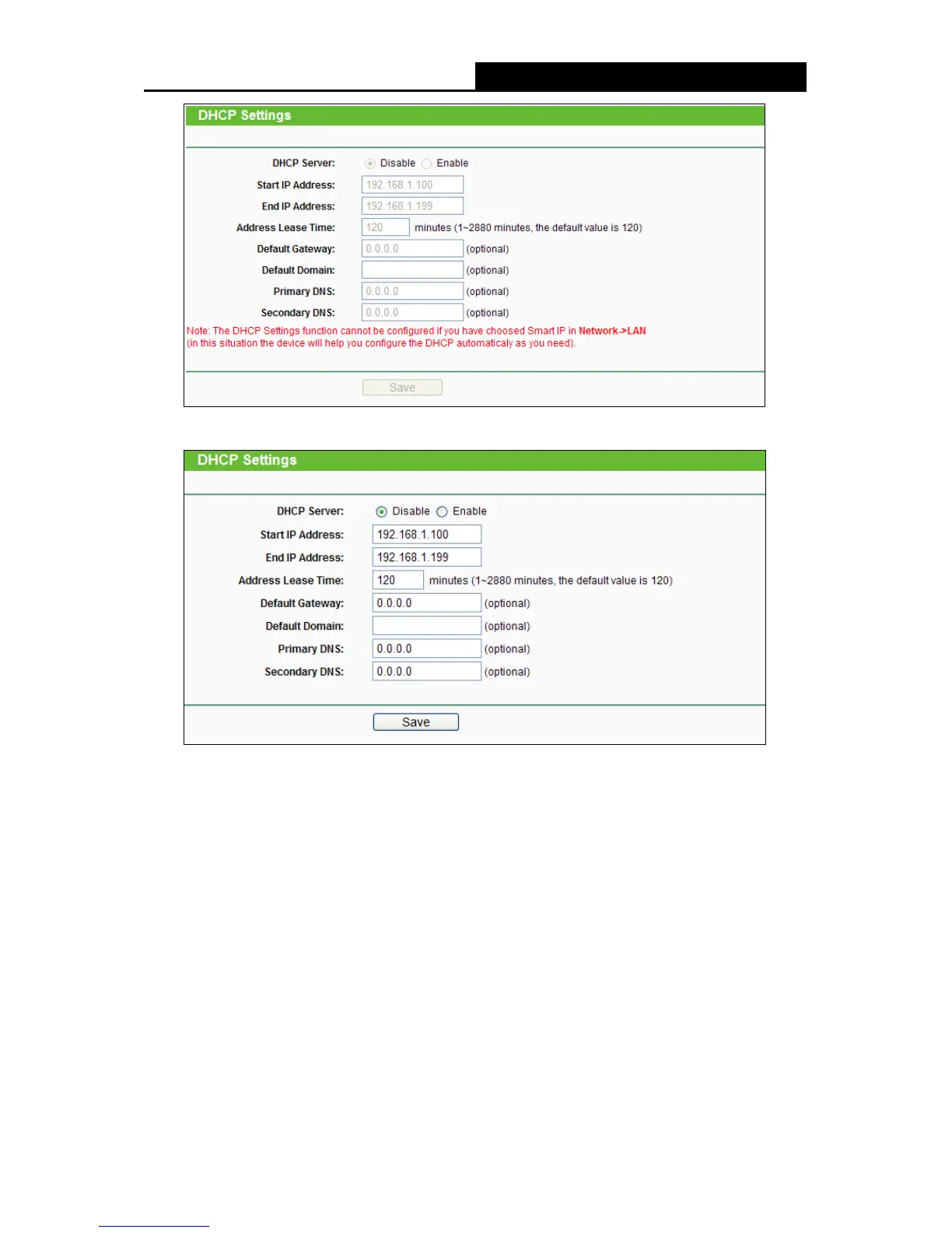 DHCP server on your Range Extender. The default setting is Enable. If you disable the