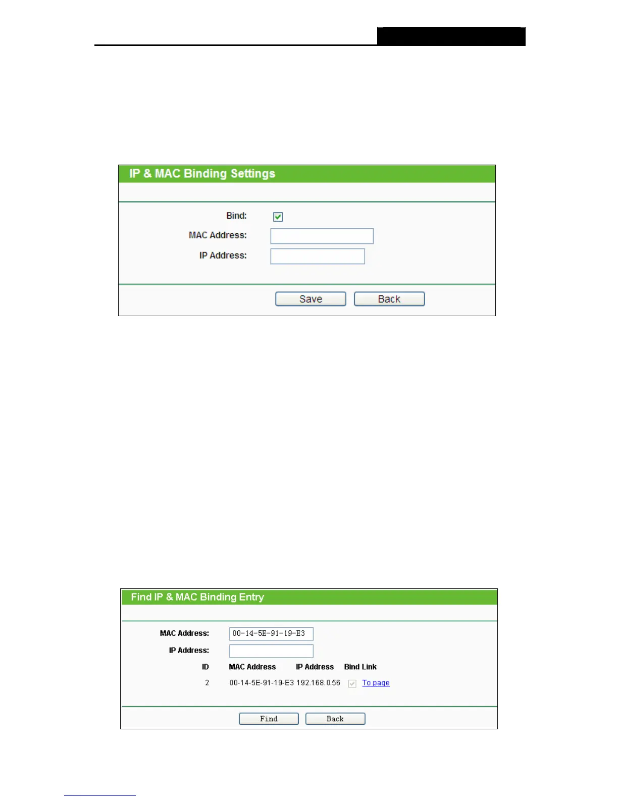 To add IP & MAC Binding entries, follow the steps below.