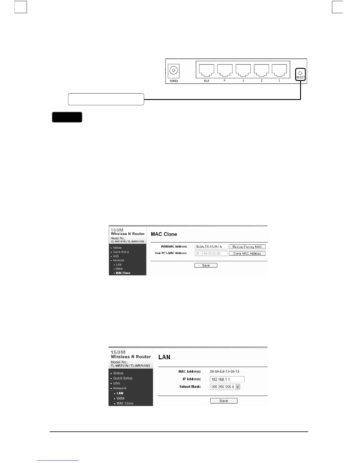 administravimo puslapio, susiraskite „Network > MAC Clone“, spustelėkite