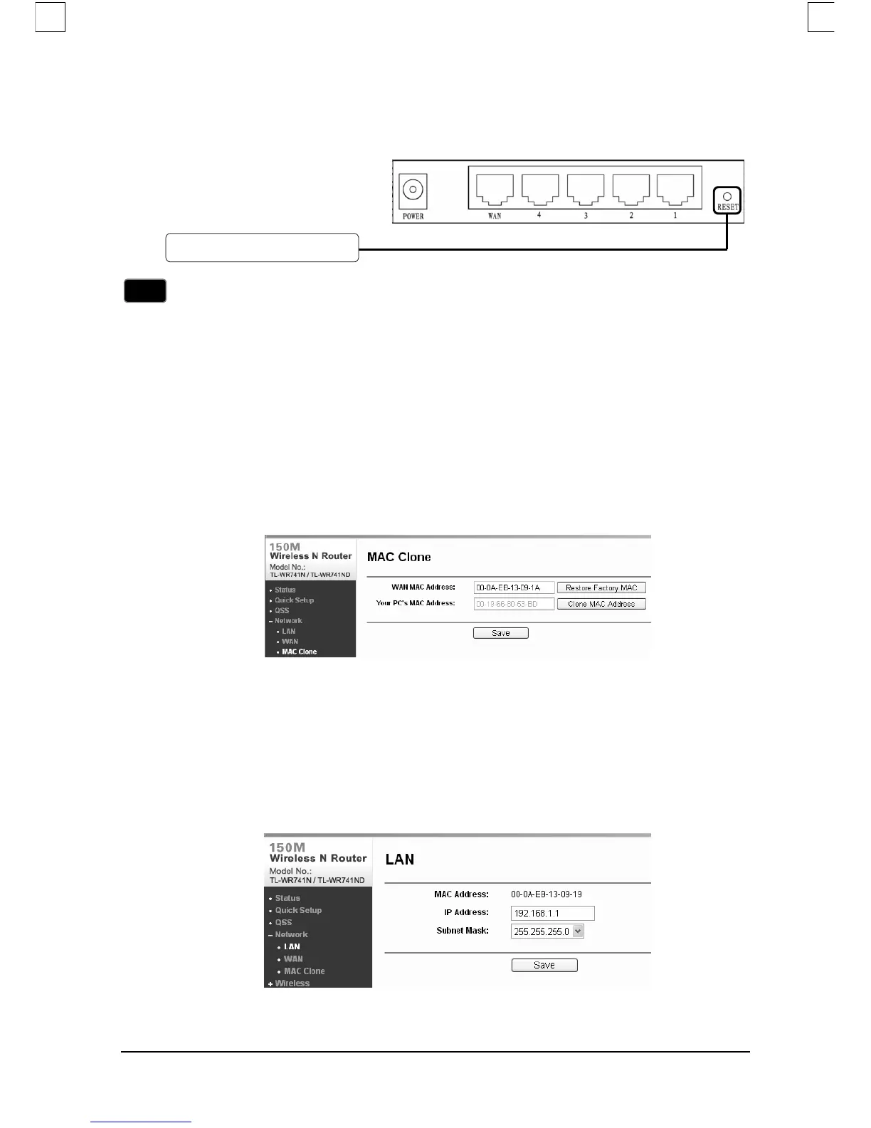 LAN”, sisestage kohtvõrgu IP-aadressi vaikeseade 192.168.1.1 asemele