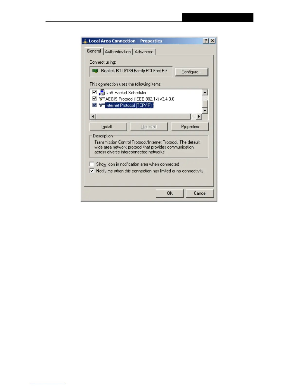4) In the prompt page that showed below, double click on the Internet Protocol (TCP/IP).