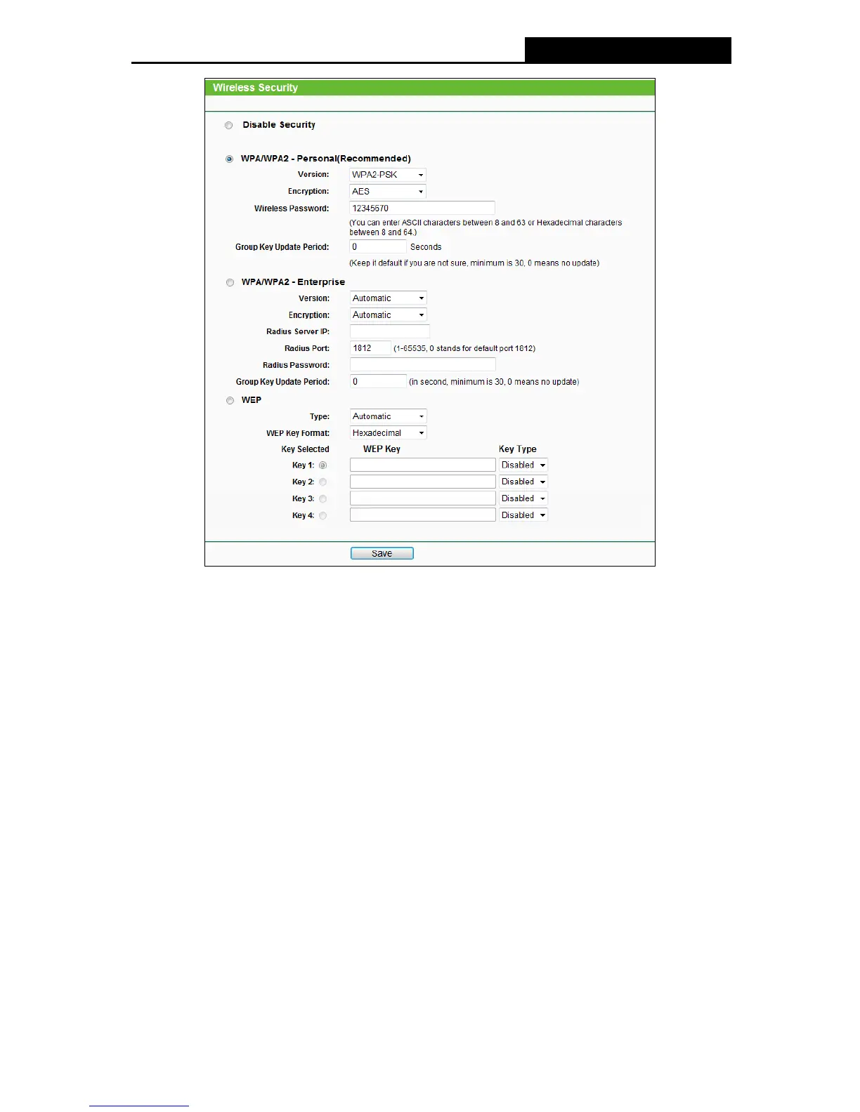 If you check the WPA/WPA2-Personal(Recommended) radio button and choose TKIP