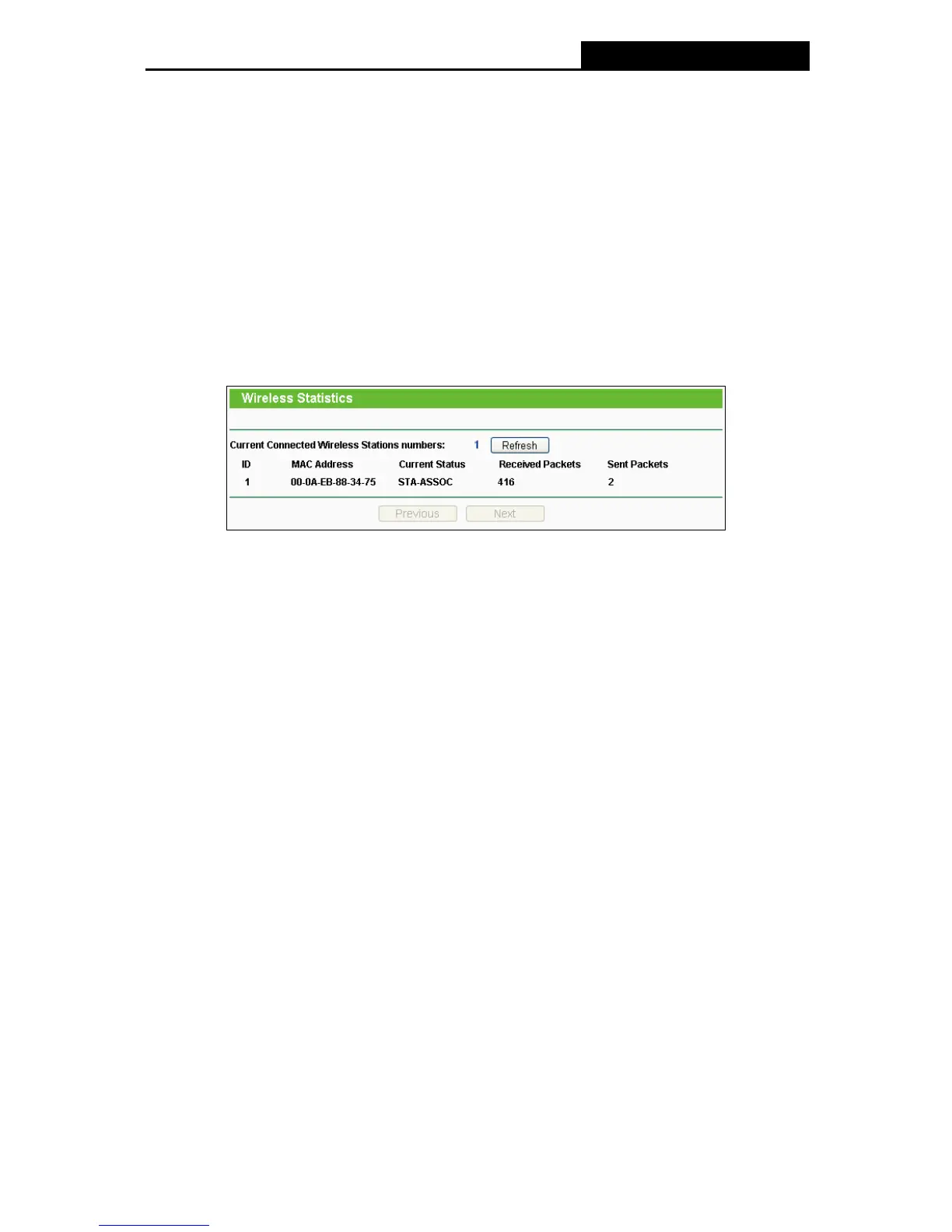 If the numbers of connected wireless stations go beyond one page, click the Next button to go to