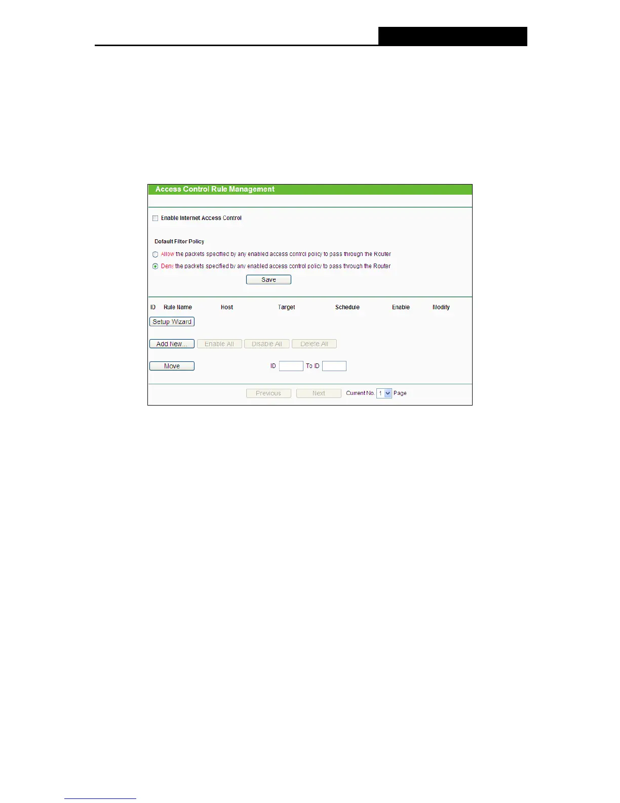 Enable Internet Access Control - Select the check box to enable the Internet Access