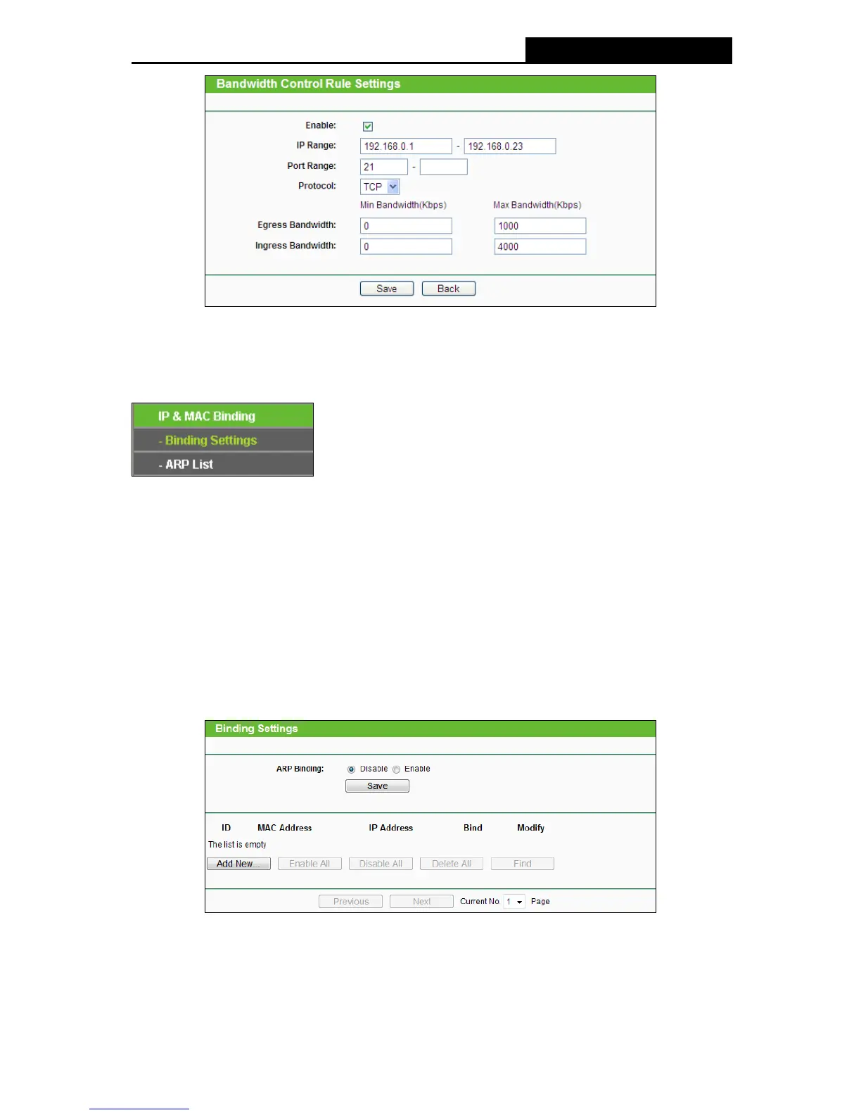 There are two submenus under the IP &MAC Binding menu (shown in Figure 4-69): Binding