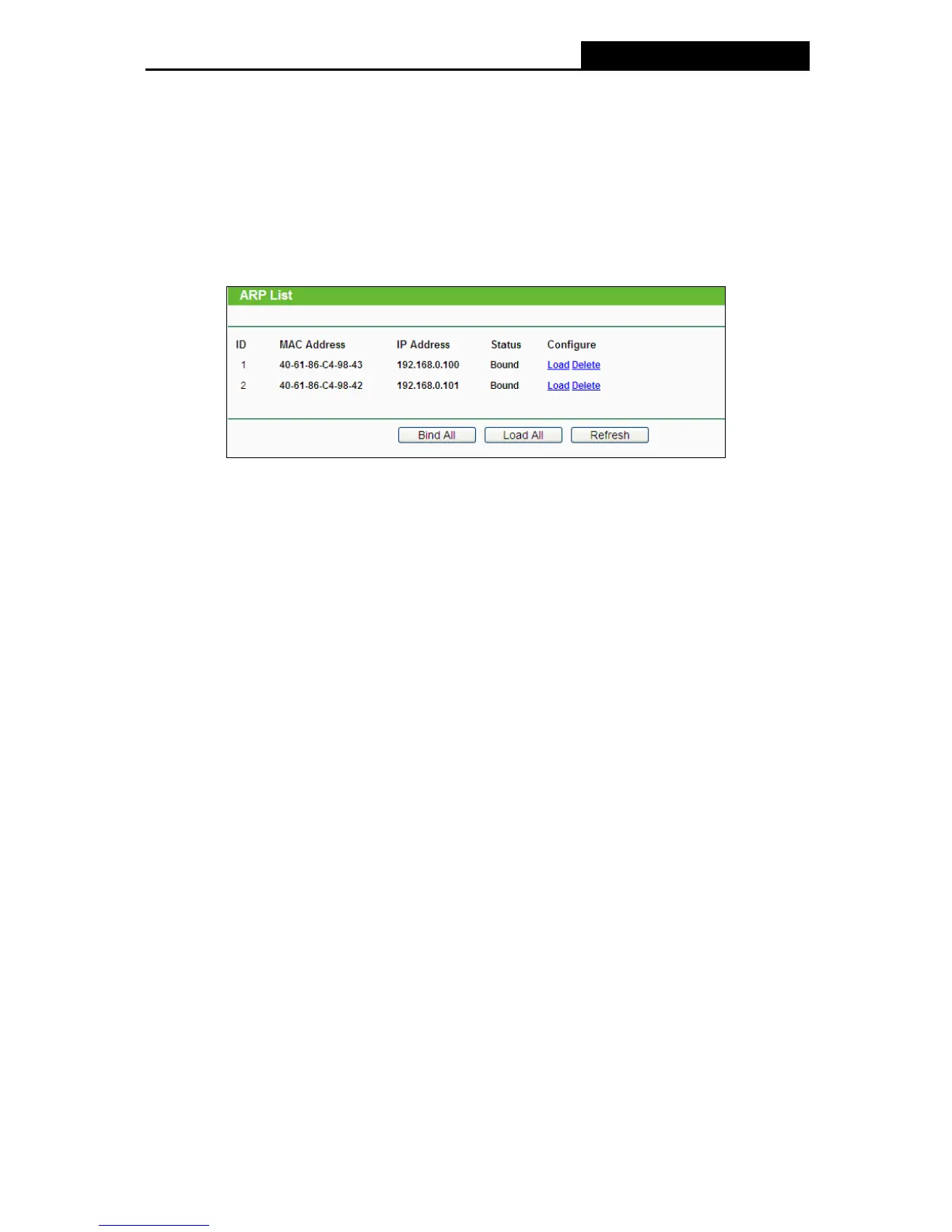 Click the Load All button to load all items to the IP & MAC Binding list.