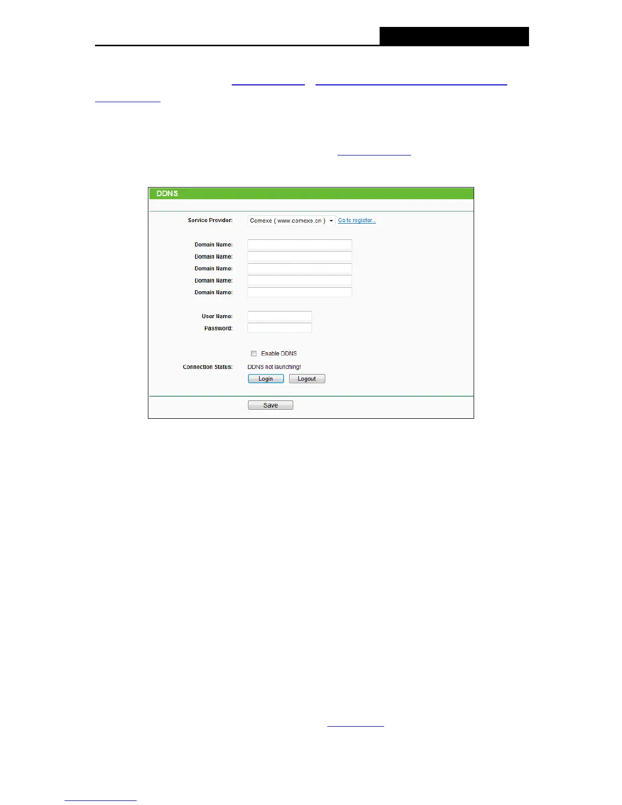 If the dynamic DNS Service Provider you select is www.comexe.cn, the page will appear as