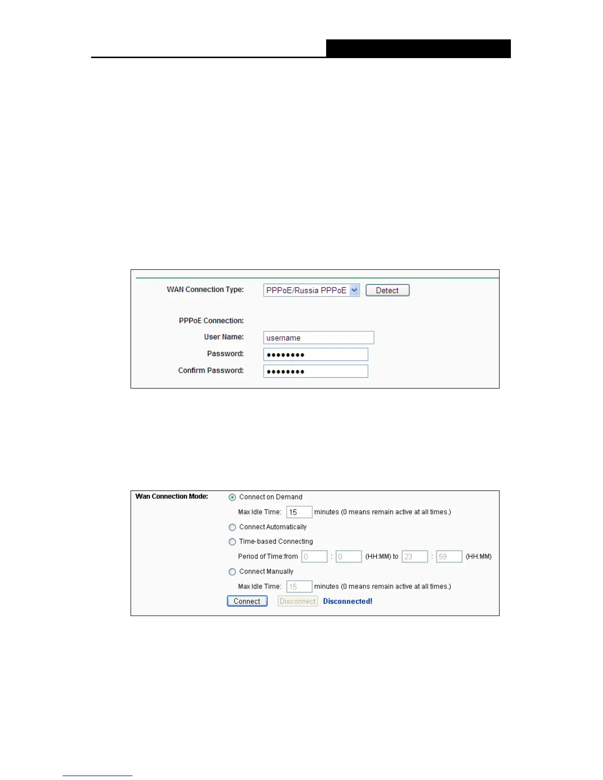 4)  If your ADSL lease is in “pay-according-time” mode, select “Connect on Demand” or