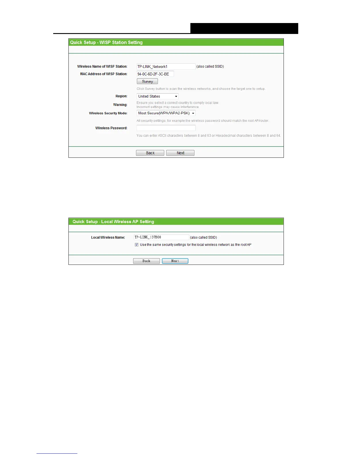 4. Click the Next button in Figure 3-12, the Local Wireless AP Setting page will appear as below.