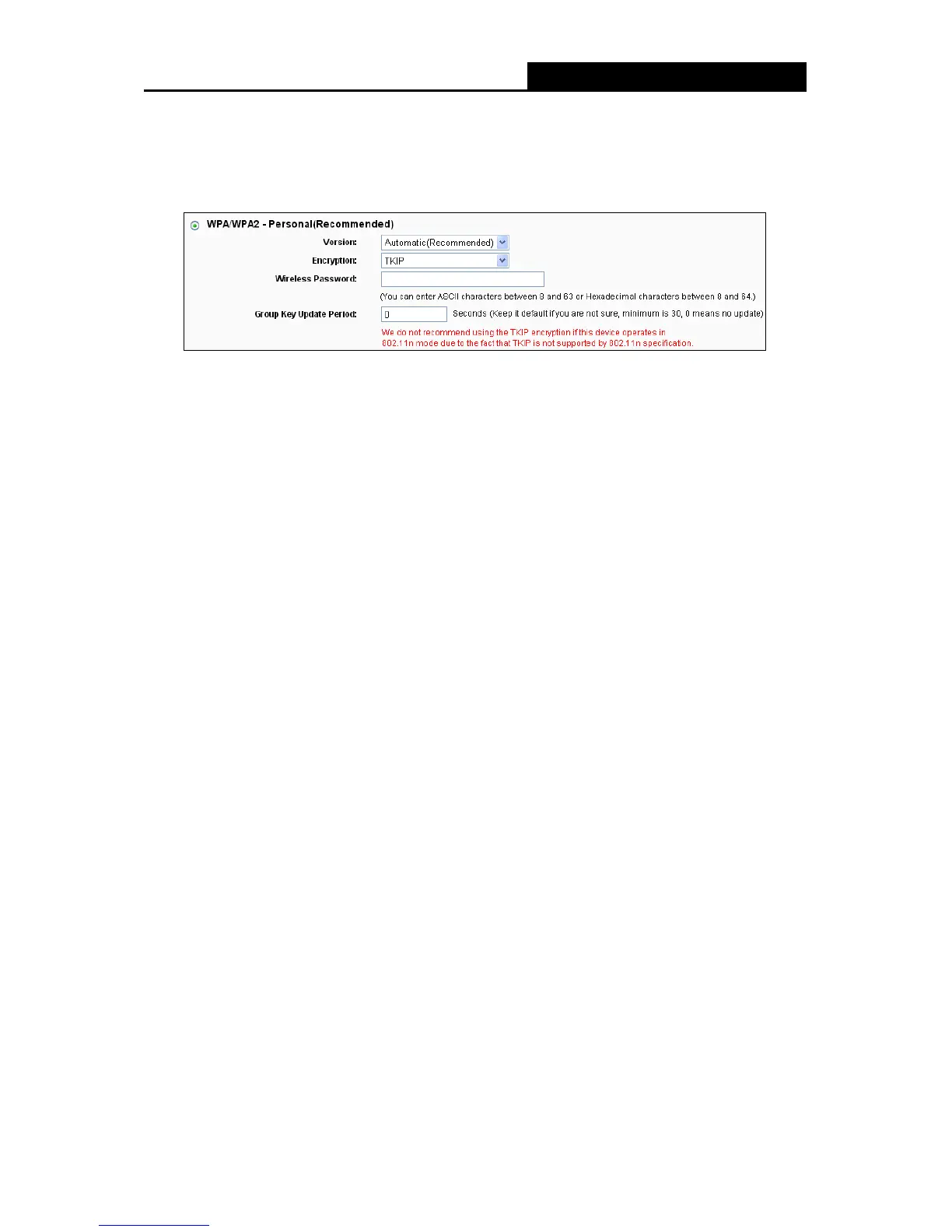 If you check the WPA-PSK/WPA2-PSK radio button and choose TKIP encryption, you will
