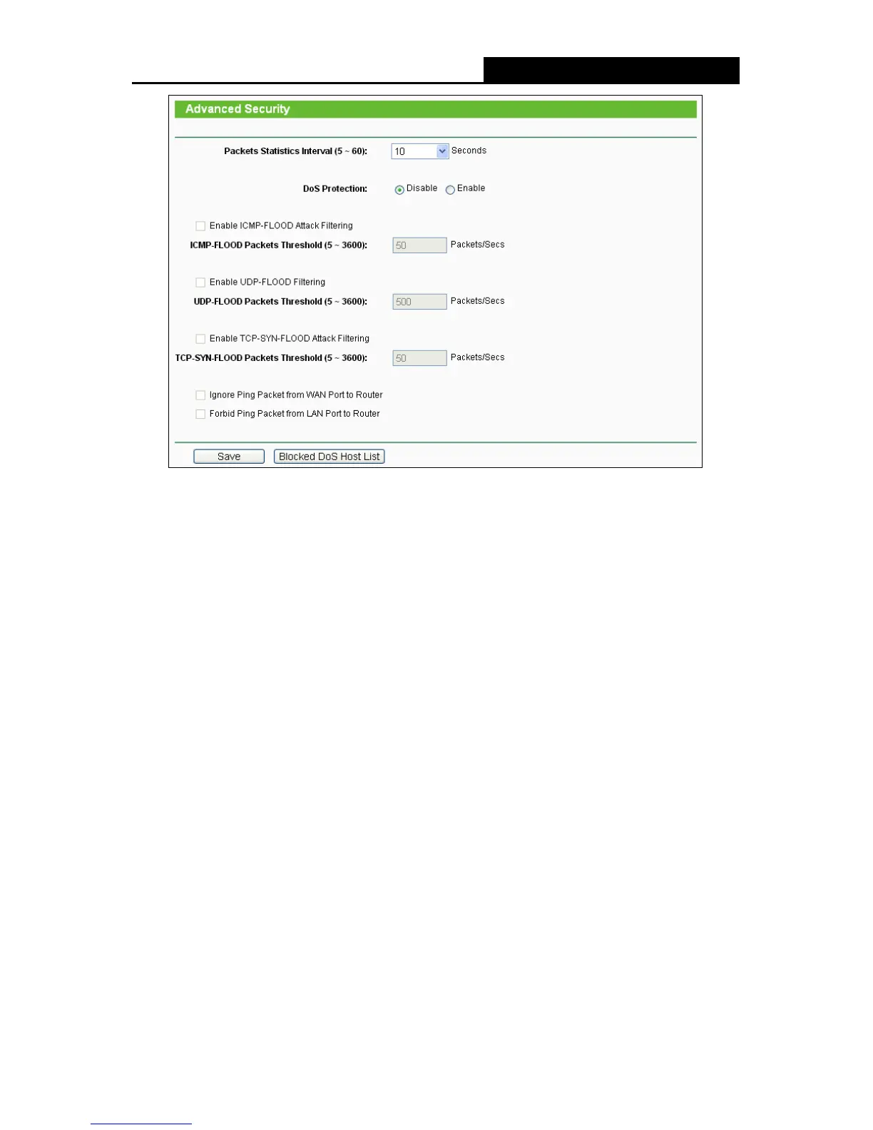 Packets Statistics Interval (5~60) - The default value is 10. Select a value between 5 and