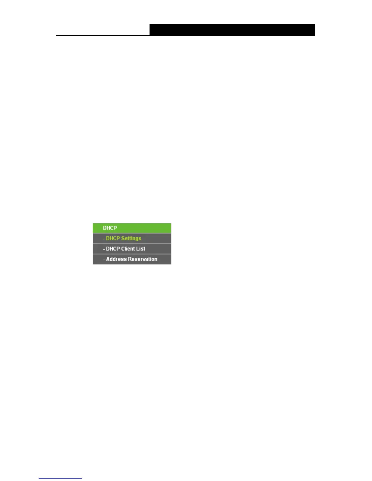 There are three submenus under the DHCP menu (shown in Figure 6-15), DHCP Settings,
