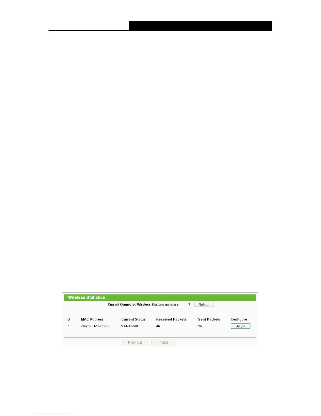 Current Status, Received Packets and Sent Packets for each connected wireless station.