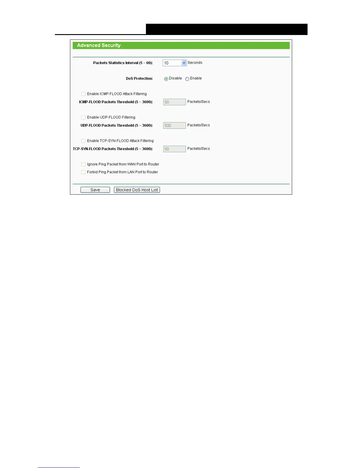 Packets Statistics Interval (5~60) - The default value is 10. Select a value between 5 and