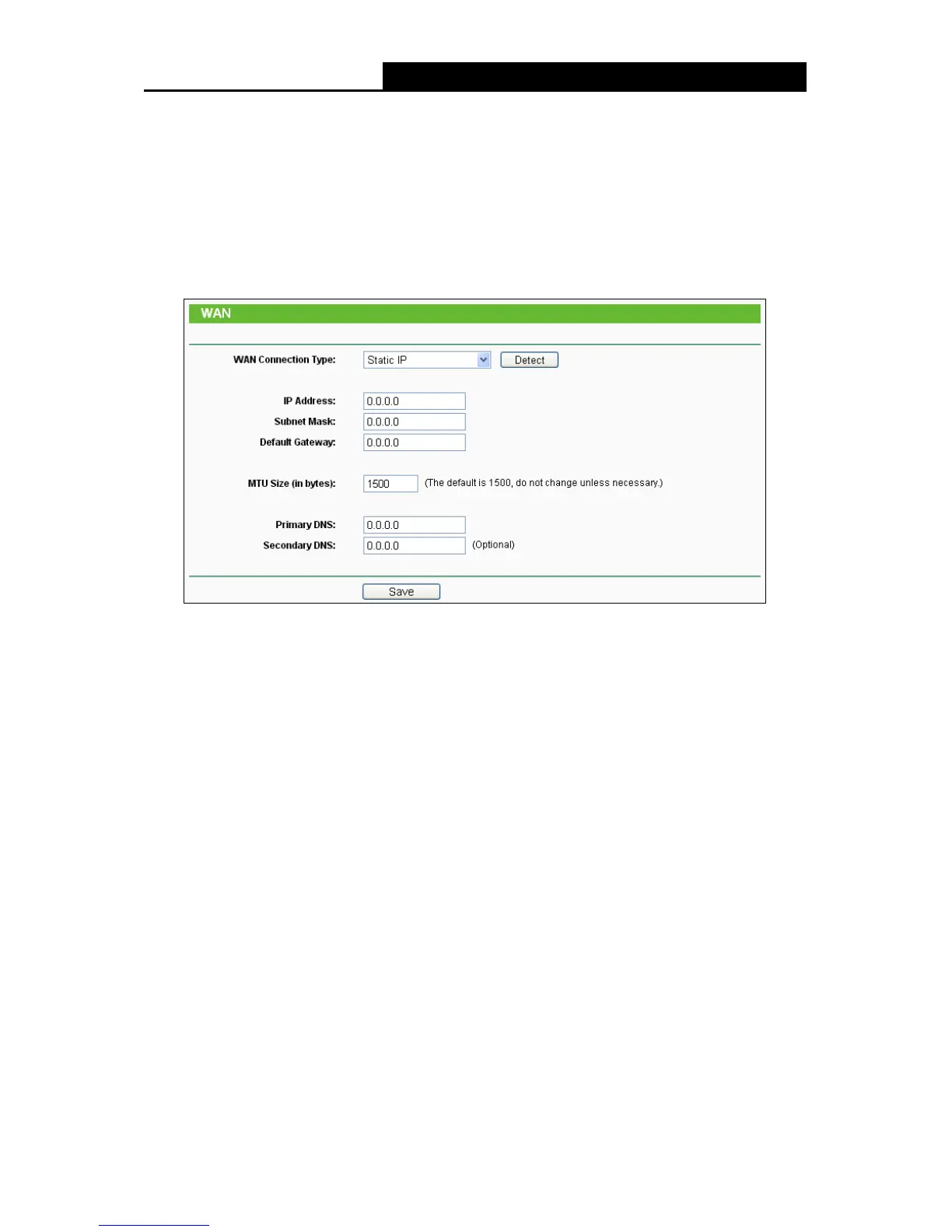 setting, select Static IP. The Static IP settings page will appear as shown in Figure 4-10.
