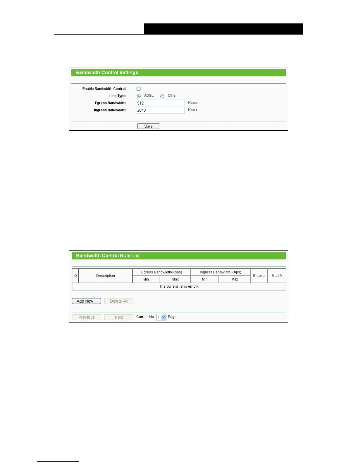 Enable Bandwidth Control - Check this box so that the Bandwidth Control settings can take