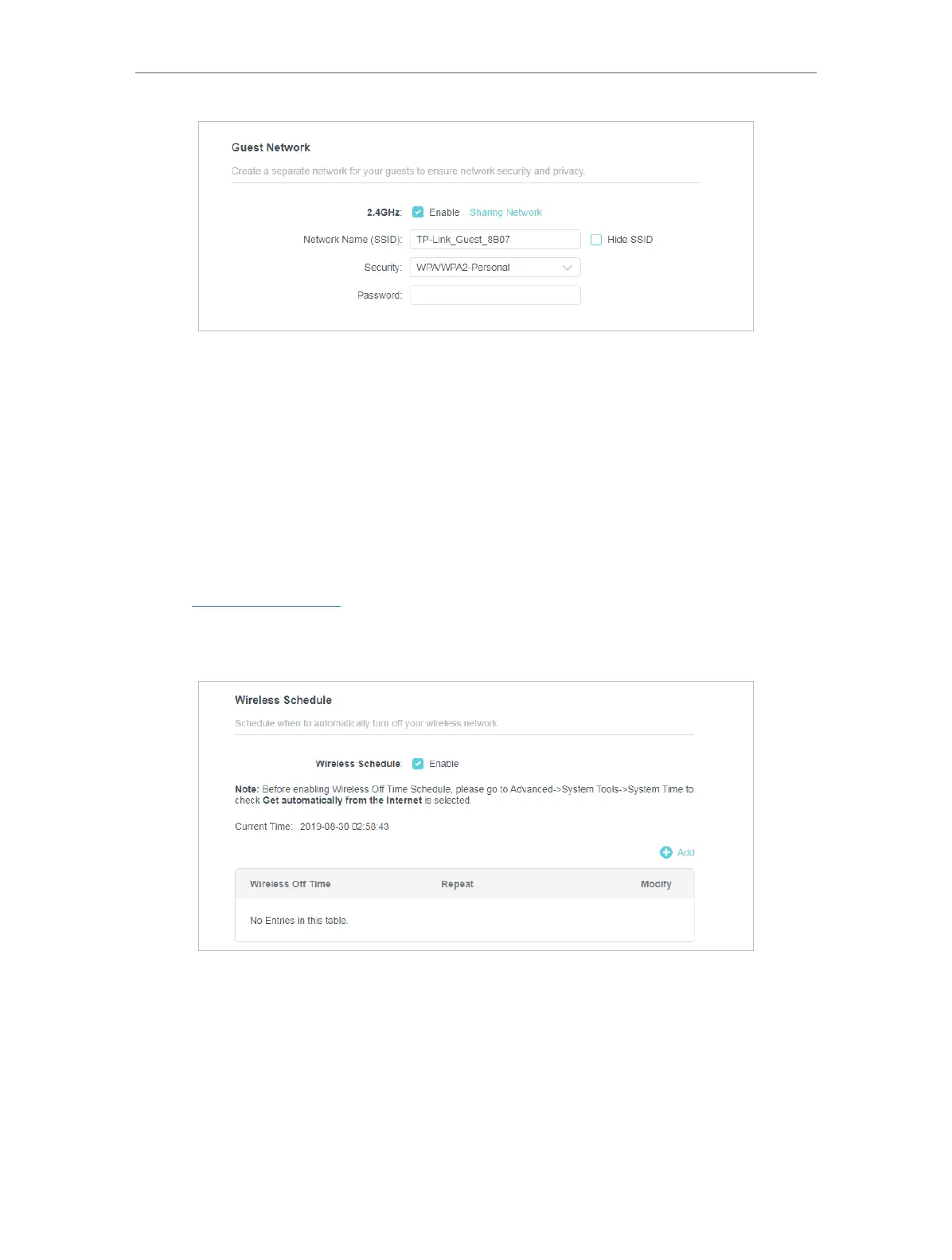 4. Click Add tp specify a wireless off period during which you need the wireless off
