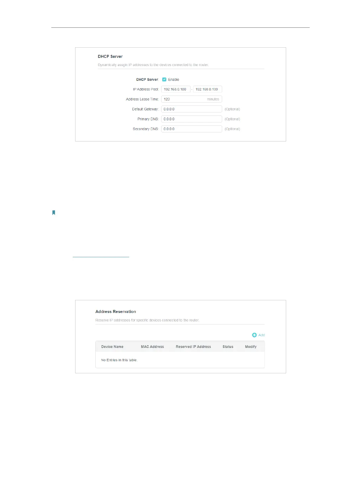3. Click Add in the Address Reservation section.