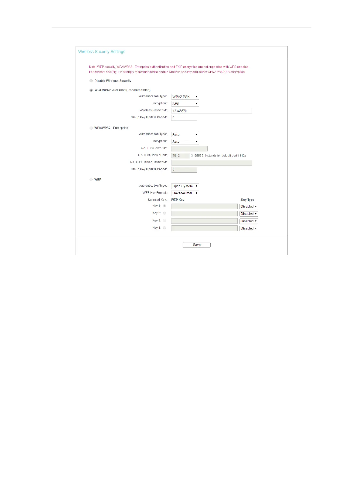 • Disable Wireless Security - The wireless security function can be enabled or disabled.