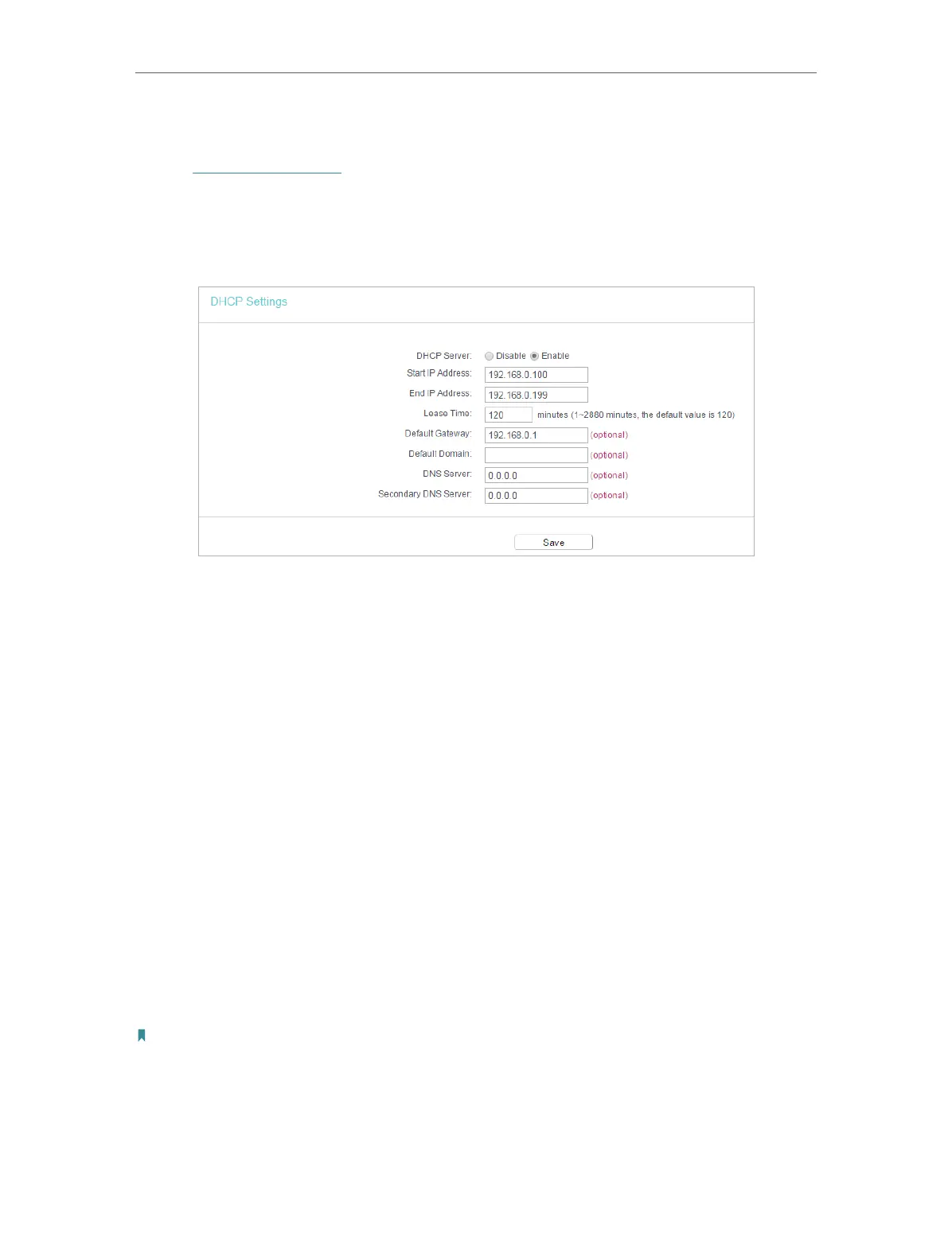 • DHCP Server - Enable or disable the DHCP server. If disabled, you must have another
