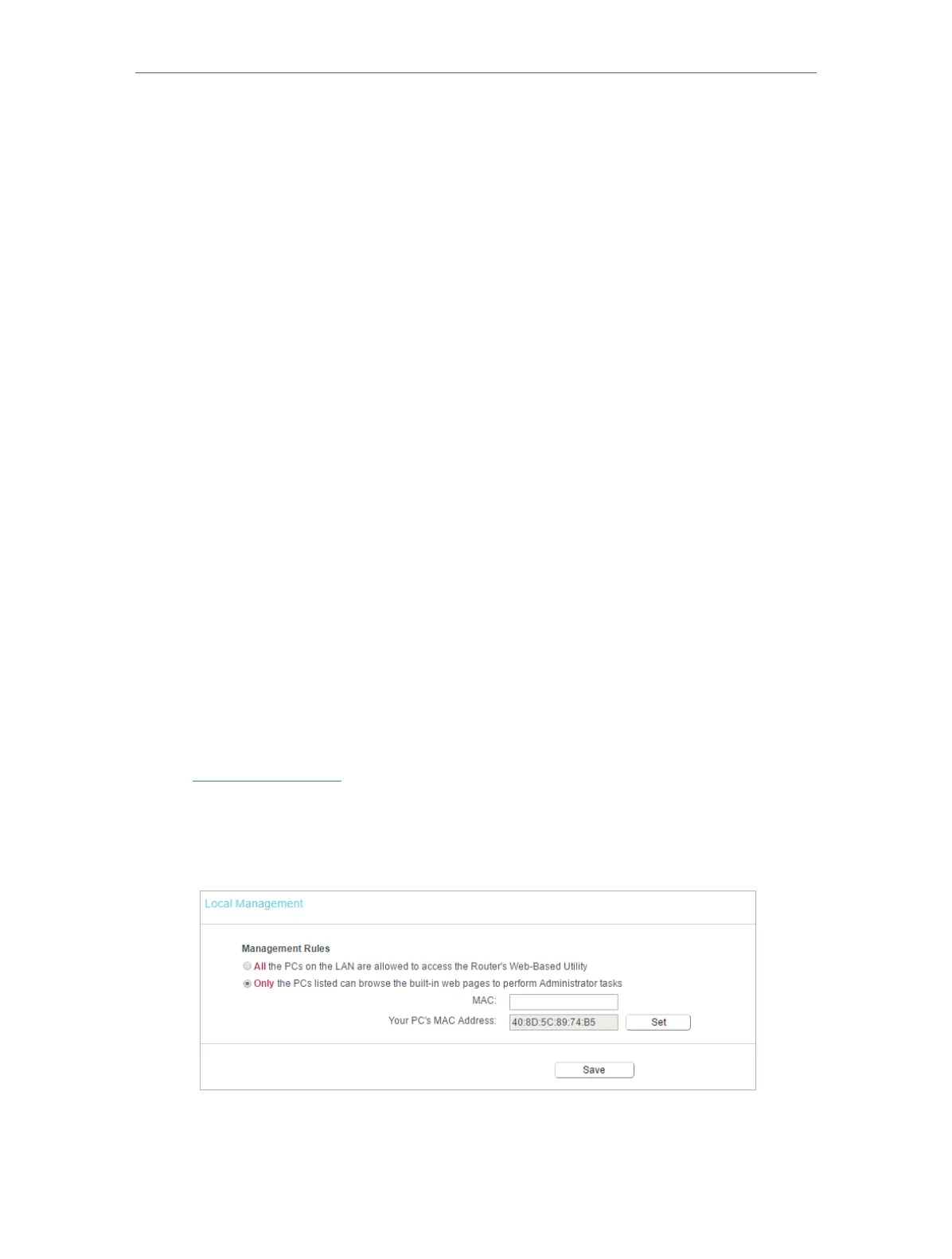 For example, if you want to allow PCs with specific MAC addresses to access the router’s