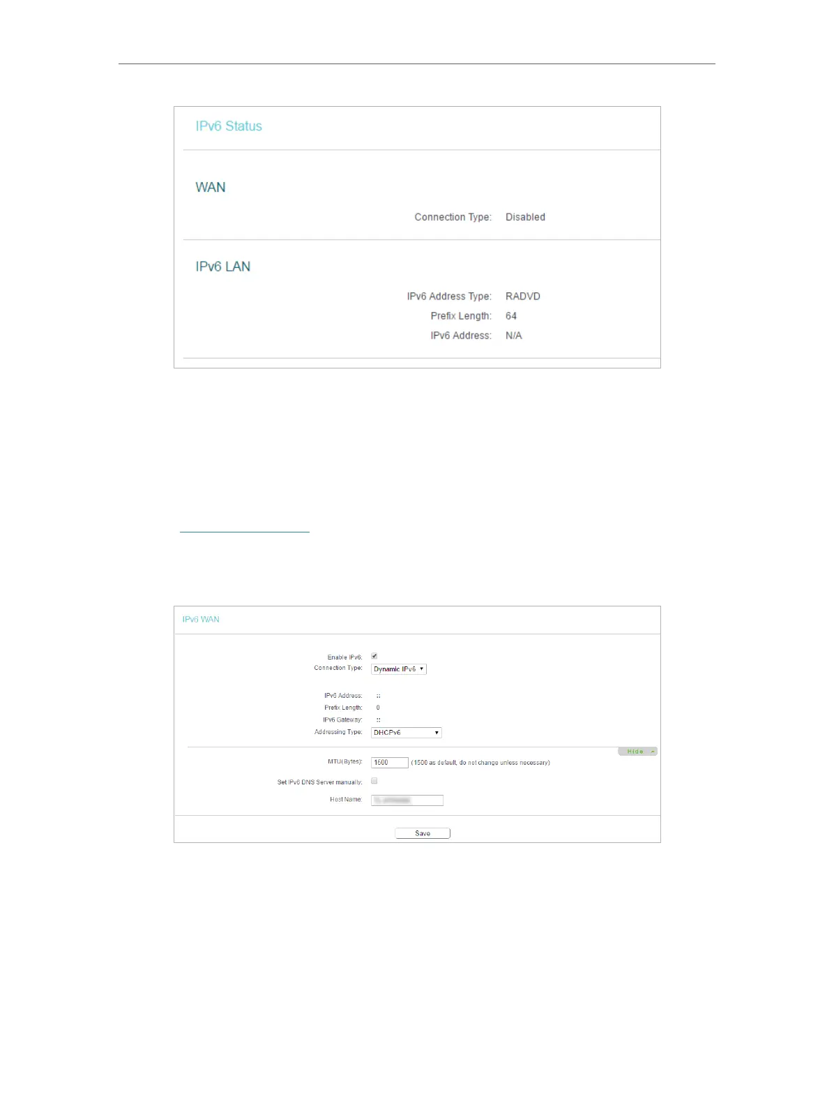 • WAN - This section shows the current IPv6 Connection Type.