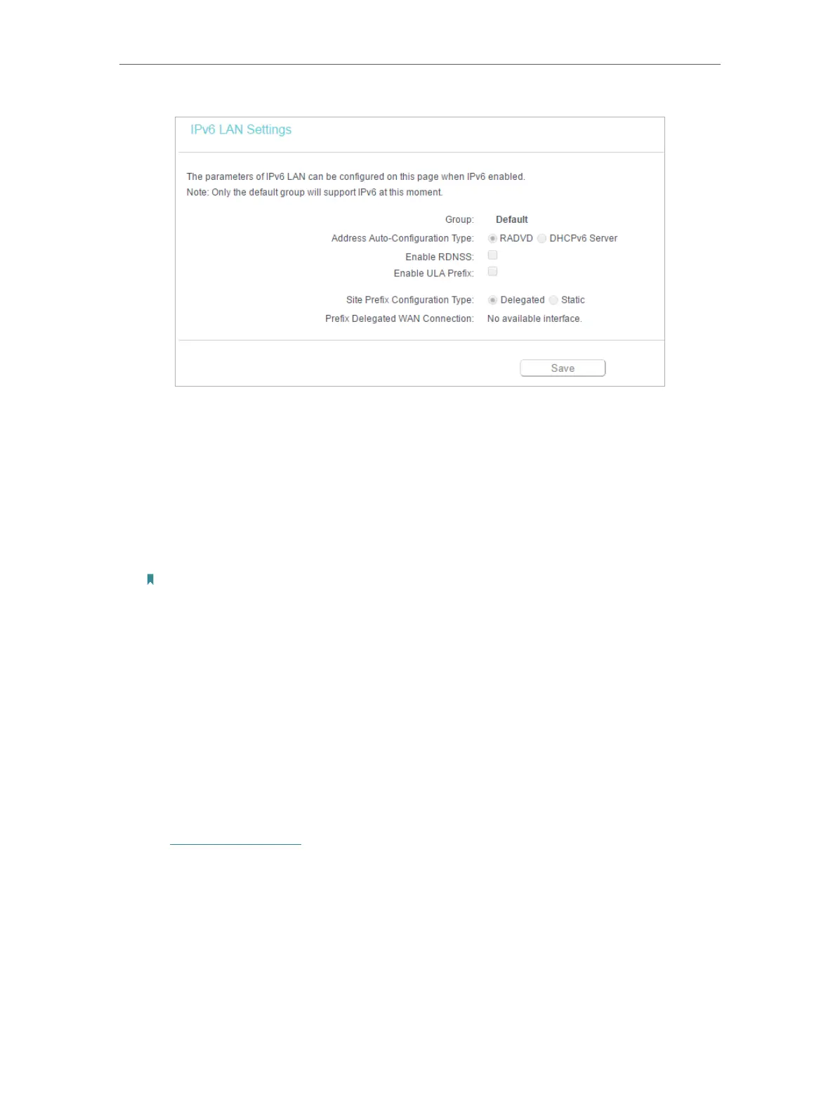 • Delegated - Get the IPv6 address prefix from the ISP automatically, and the