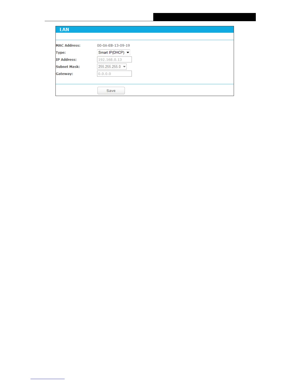 If you select the type of Smart IP, the DHCP server in this device will not startup.
