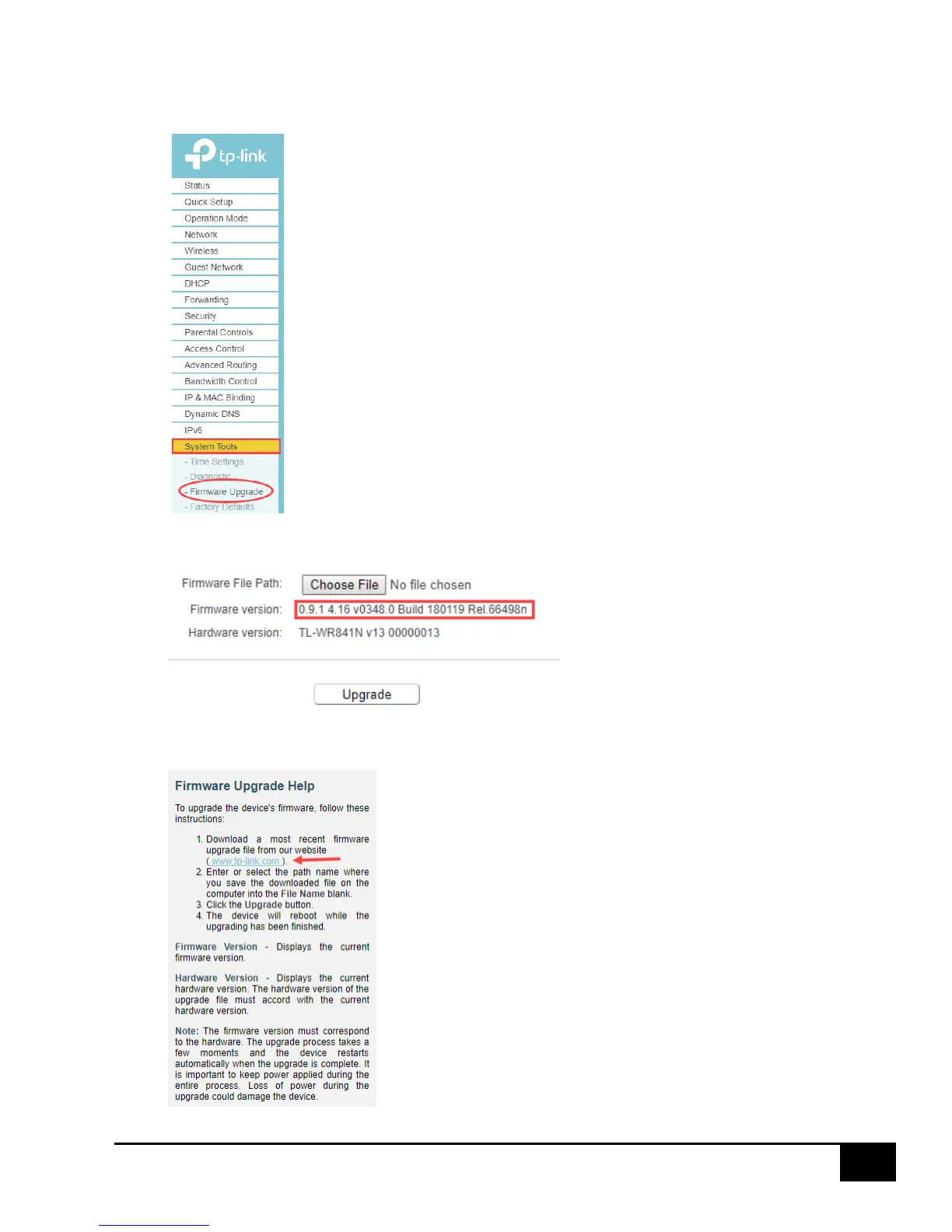2. Select “System Tools” then “Firmware Upgrade” from the left-hand menu: