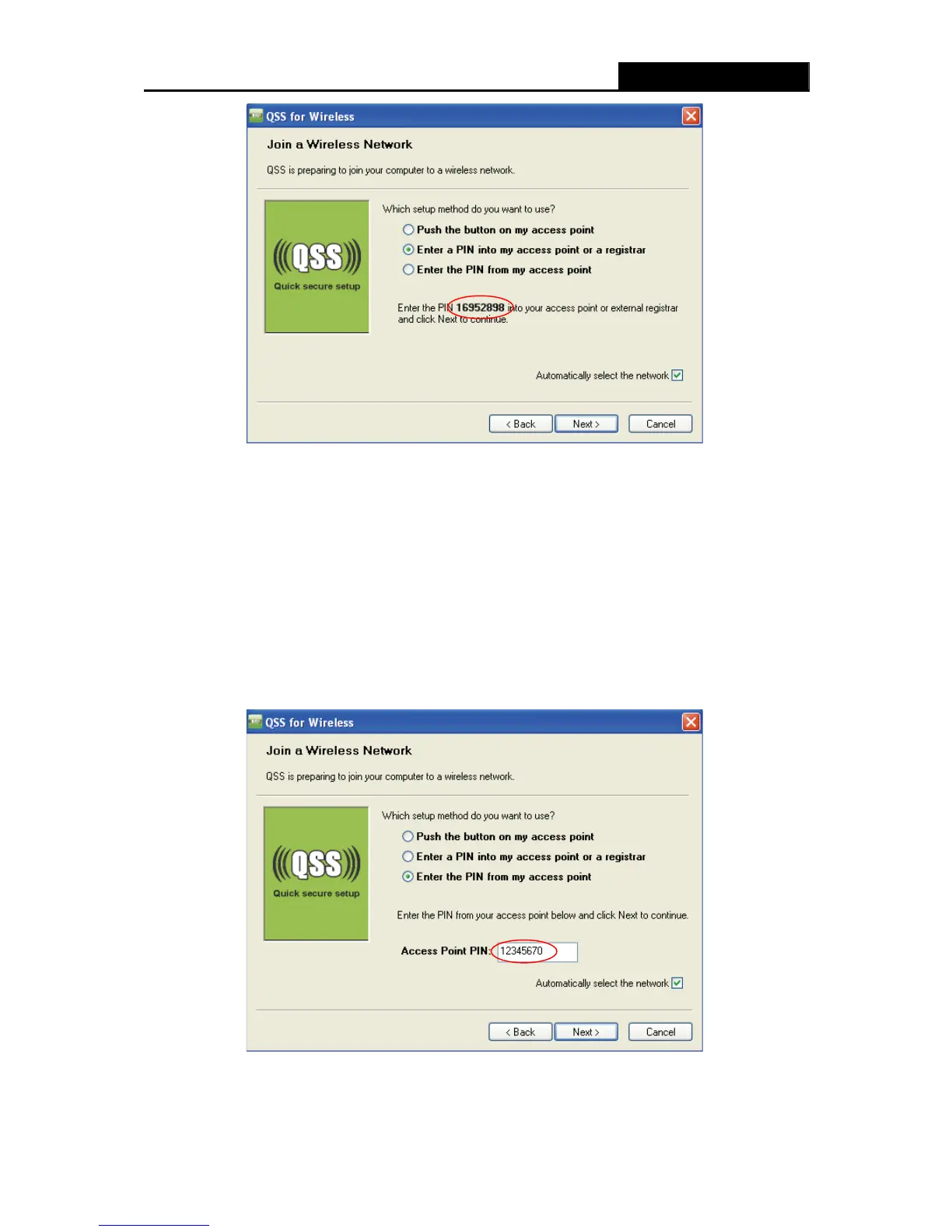 access point” in the configuration utility of the QSS as below, and enter the PIN code of