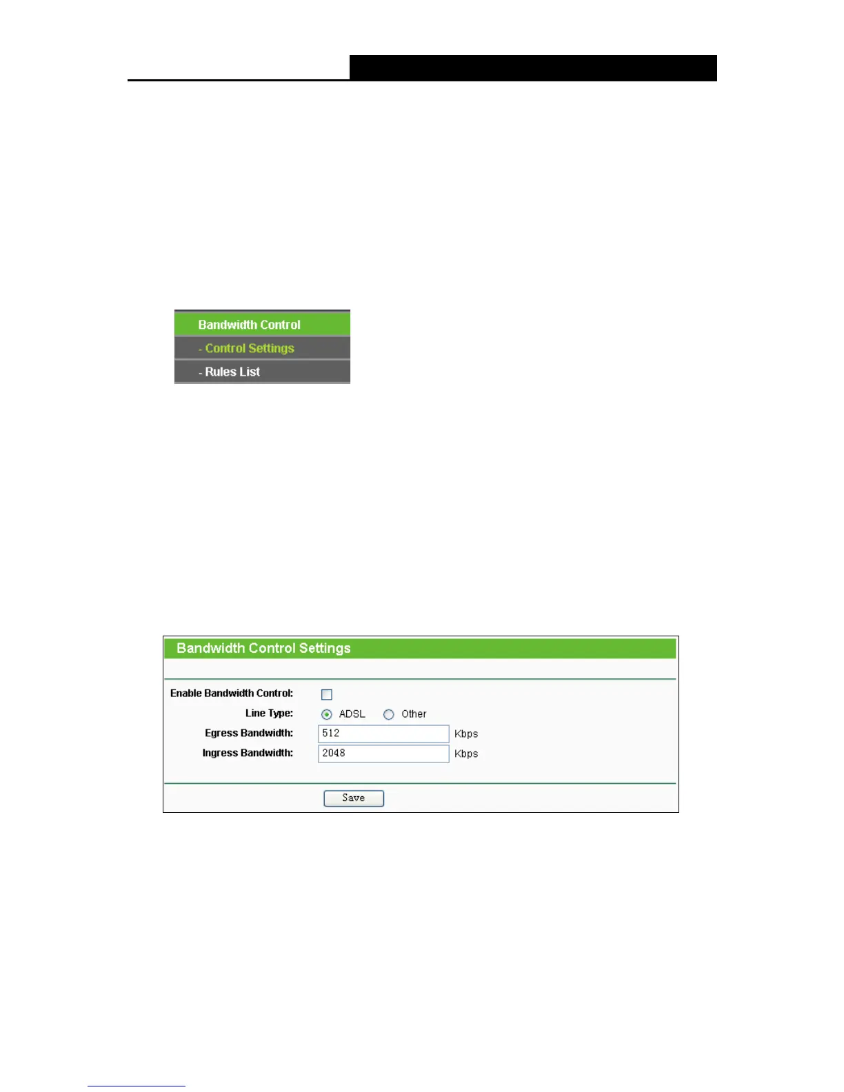 Enable Bandwidth Control - Check this box so that the Bandwidth Control settings can take