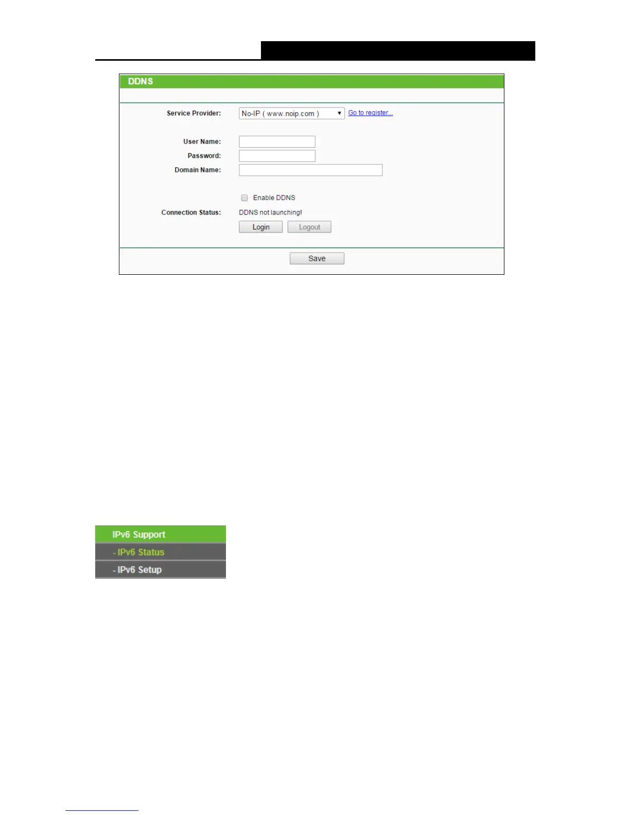 There are two submenus under the IPv6 Support menu (shown in Figure 4-100): IPv6 Status and
