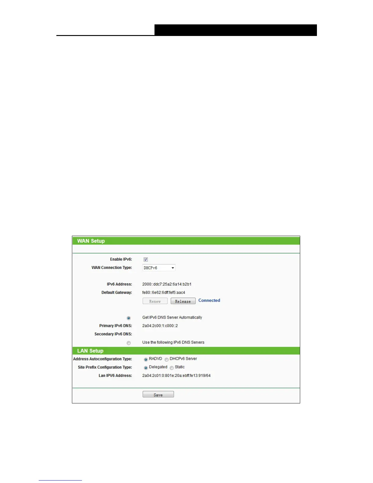 LAN IPv6 Address - Display the LAN IPv6 address created by the device.