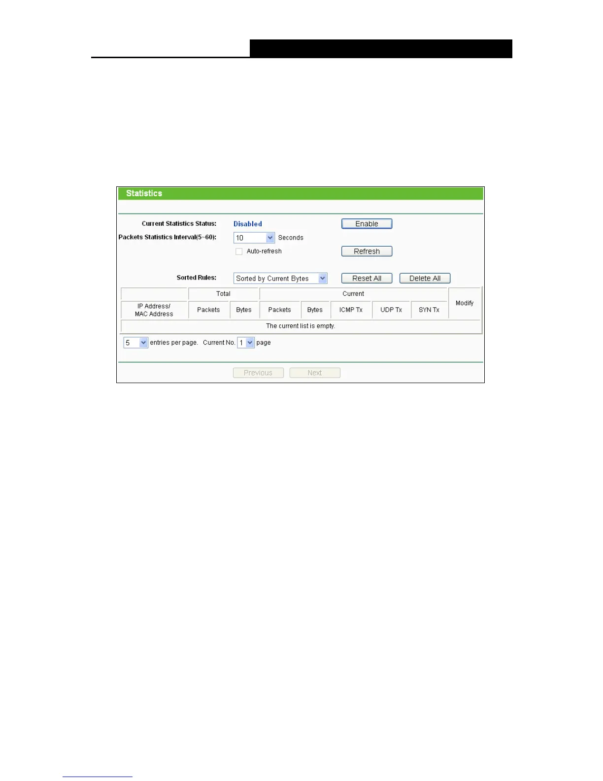 Current Statistics Status - Enable or Disable. The default value is disabled. To enable it,