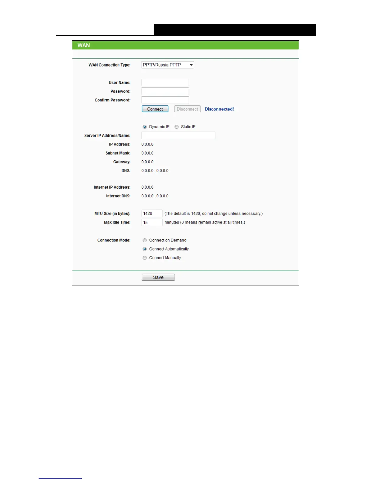 Figure 4-12 WAN - PPTP/Russia PPTP