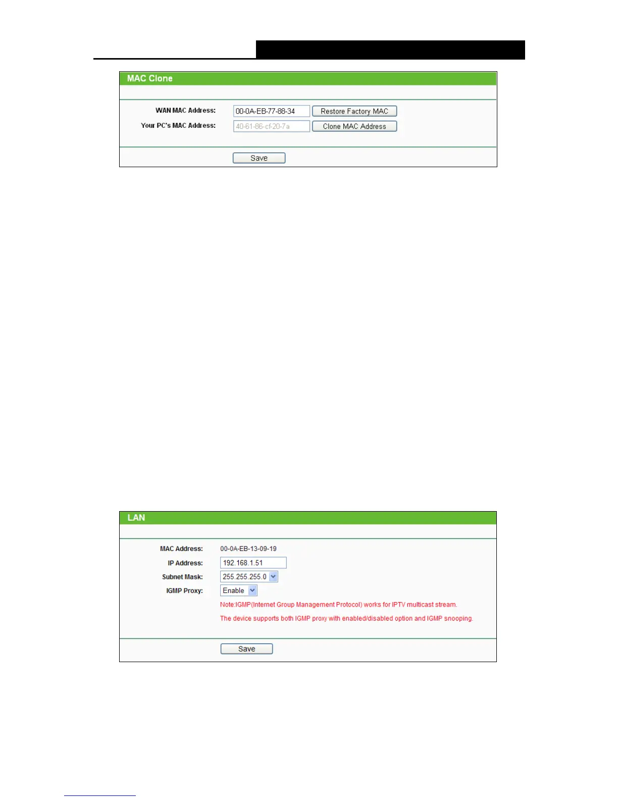MAC Address - The physical address of the Router, as seen from the LAN. The value can't