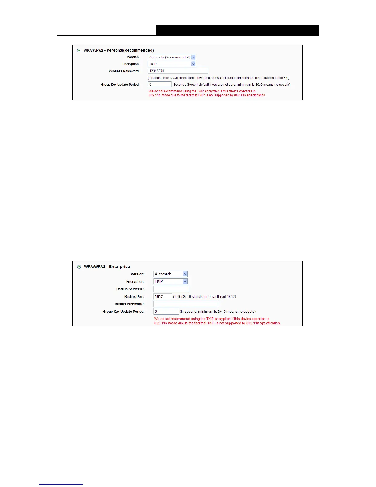 If you check the WPA/WPA2- Enterprise radio button and choose TKIP encryption, you